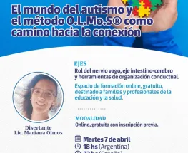 Será el 7 de abril y estará a cargo de la Lic. Mariana Olmos. Está destinada a familias y profesionales de la salud y la educación.