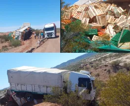 Un camión con acoplado volcó en la Ruta 141, a la altura del kilómetro 120, en Marayes. Por suerte, el conductor solo sufrió golpes menores.