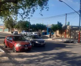 Una mujer estaba intentando estacionar cuando el motociclista la chocó.