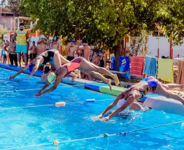 La Escuela de Natación Aguas Cristalinas cumple diez años. "Genera mucha satisfacción ver el crecimiento y aprendizaje de los chicos", cuenta la profesora Julieta Escudero.