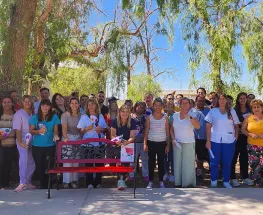 Instalan en el Hospital Julieta Lanteri el primer "Banco Rojo" de San Juan para visibilizar la violencia de género en la sociedad.