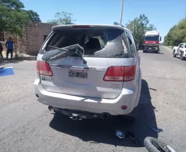 El siniestro ocurrió en la intersección de Ruta 40 y Progreso. El motociclista fue trasladado al Hospital Rawson con heridas y reaccionó violentamente tras el impacto.
