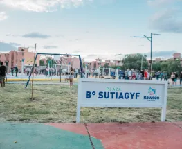 El intendente Carlos Munisaga presentó las remodelaciones realizadas en el barrio, incluyendo nuevas luminarias, cierre perimetral del playón deportivo y la esperada conexión a cloacas.
