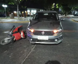Una motocicleta chocó contra un taxi y el conductor del vehículo de menor porte se llevó la peor parte.