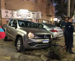Una camioneta y un auto protagonizaron un fuerte siniestro vial en una transitada calle.