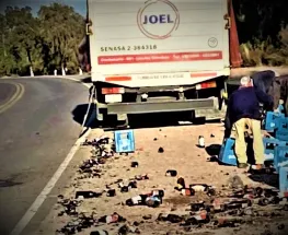 EN ALBARDÓN. Un camión pierde mucha cerveza tras chocar en la Ruta 40