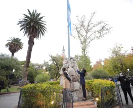 La intendenta Susana Laciar realizó el izamiento del Pabellón Nacional junto a la banda de música de la Policía de San Juan.