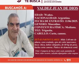 El hombre que se ha extraviado tiene 60 años y padece demencia senil continua sin aparecer. Cualquier información puede comunicarse a la Línea de emergencia 911.