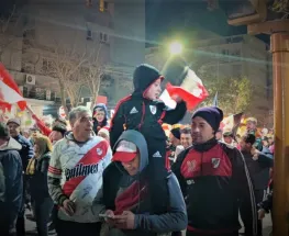 Los hinchas sanjuaninos de River festejan la obtención del nuevo campeonato.