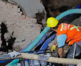 Trabajos de OSSE. Reparan un colector cloacal en pleno centro capitalino