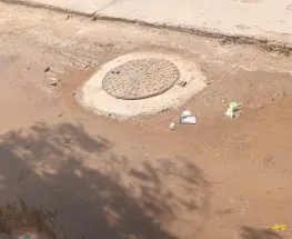 El Jardín de Infantes ENI N°14 de Media Agua enfrenta un grave problema sanitario por un desborde cloacal en su vereda.