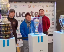La exposición de las copas que ganó la selección argentina están en San Juan y miles de chicos son felices al tomarse una foto con ellas.