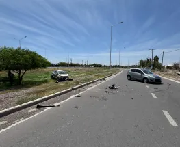Motociclista fue hospitalizado luego de chocar frontalmente con un auto, a metros del ingreso al Autódromo El Zonda.