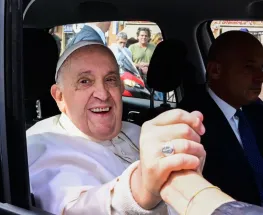 El sumo pontífice estaba sonriente y de buen humor. Se bajó de su automóvil para saludar a unos fieles que lo esperaban en la puerta del hospital antes de dirigirse al Vaticano.