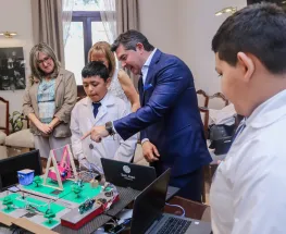 El gobernador Marcelo Orrego recibió en Casa de Gobierno a los estudiantes de la Escuela Hipólito Vieytes de Caucete, quienes obtuvieron el primer puesto en las III Olimpíadas Nacionales de Robótica.