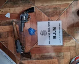Los investigadores de la Central de Policia, hicieron varios allanamientos. En una realizado en Caucete incautaron las armas y varios celulares de dudosa procedencia.