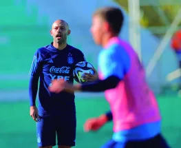 El plantel argentino fue a entrenar a la cancha de Desamparados en la tarde del lunes y en una práctica a puertas cerradas el DT Javier Mascherano comenzó a delinear el equipo.