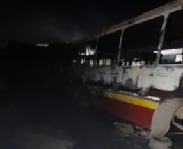 El fuego arrasó con varias unidades de transporte en un predio privado de Villa Huarpe. No hubo heridos, pero las pérdidas materiales son millonarias. Investigan el origen del siniestro.