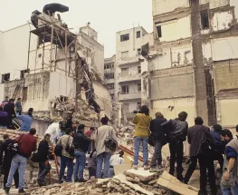 El homenaje se lleva a cabo frente a la sede de la mutual judía con un fuerte operativo de seguridad y el lema "La impunidad sigue; el terrorismo también".