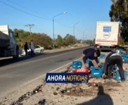 Uno de los rodados termino con parte de la carga desparramada en la ruta. Personal de la Seccional 18 investigan las causas.