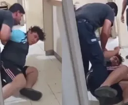 En el video se puede ver como tres policías tratan de llevar por la fuerza a uno de los detenidos, supuestamente por no contestar lo que le preguntaban...