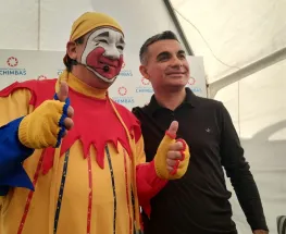 El querido payaso y músico, Piñón Fijo, se presenta en Chimbas llevando alegría a una multitud de grandes y pequeños.