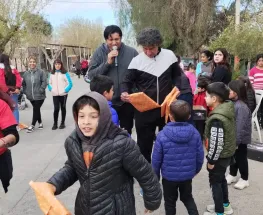 El querido payaso y músico, Piñón Fijo, se presenta en Chimbas llevando alegría a una multitud de grandes y pequeños.