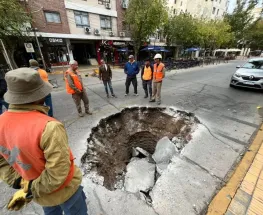 El pavimento cedió en plena Avenida Ignacio de la Roza y dejó al descubierto dos profundos huecos, que habrían sido causados por un pozo negro subterráneo.