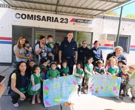 Semana de los jardines. Chicos del Jardín de Mimosaurio visitan la comisaría del barrio Rivadavia Norte