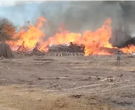 Un gran incendio se produjo en una finca del departamento Caucete, donde se encontraba acumulados palos y maderas que no estaba siendo utilizadas.