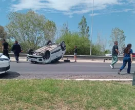 Desde la Policía trataban de determinar las causas del accidente vial que termino en vuelco. Solo el conductor fue trasladado hasta el Hospital Rawson.