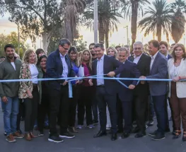 En total, fueron pavimentados 19.400 m² de calzada. Del acto participaron el Gobernador Marcelo Orrego, el vicegobernador Fabián Martín y el intendente de Rivadavia Sergio Miodowsky.