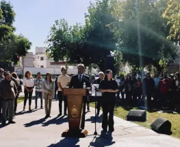 Los héroes de Malvinas fueron reconocidos en un emotivo acto en la Plaza España, que contó con la presencia del gobernador, Sergio Uñac.