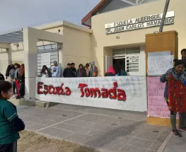 Se trata de la Escuela Albergue Juan Carlos Navarro, ubicada en El Encón. Los padres indican que alrededor de 100 estudiantes de nivel secundario cursan en los pasillos por falta de espacio.