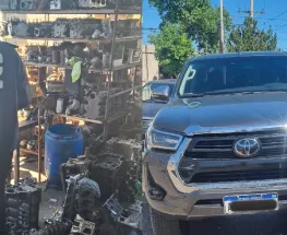El procedimiento estuvo a cargo del personal de la Brigada de Investigaciones de la Central de Policía. Se encontró una camioneta melliza y partes de motores.