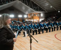 En la Superiora. La ministra de Educación les toma la Promesa a la Bandera a estudiantes de Rawson