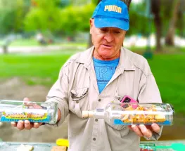 El jubilado fabrica artesanías de modelismo naval adentro de botellas de vidrio, con mucha paciencia y dedicación, pone todo para hacer estas obras de arte. Encuentra en esta actividad un escape y asegura que es el único en cuyo que las fabrica. ...